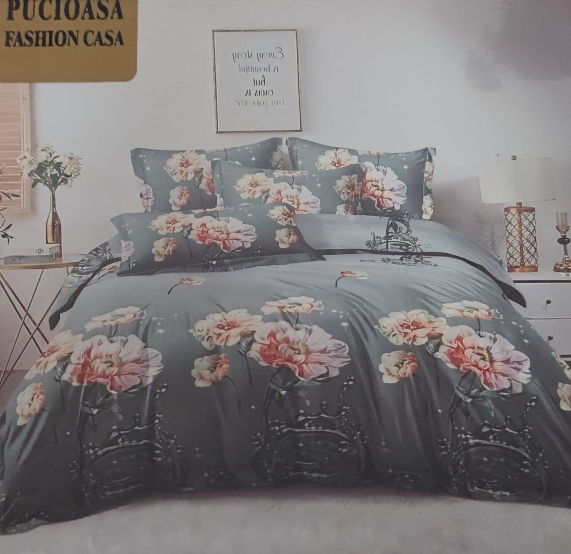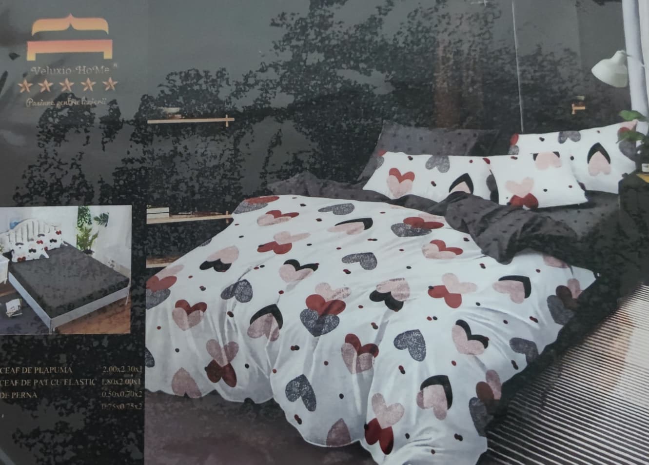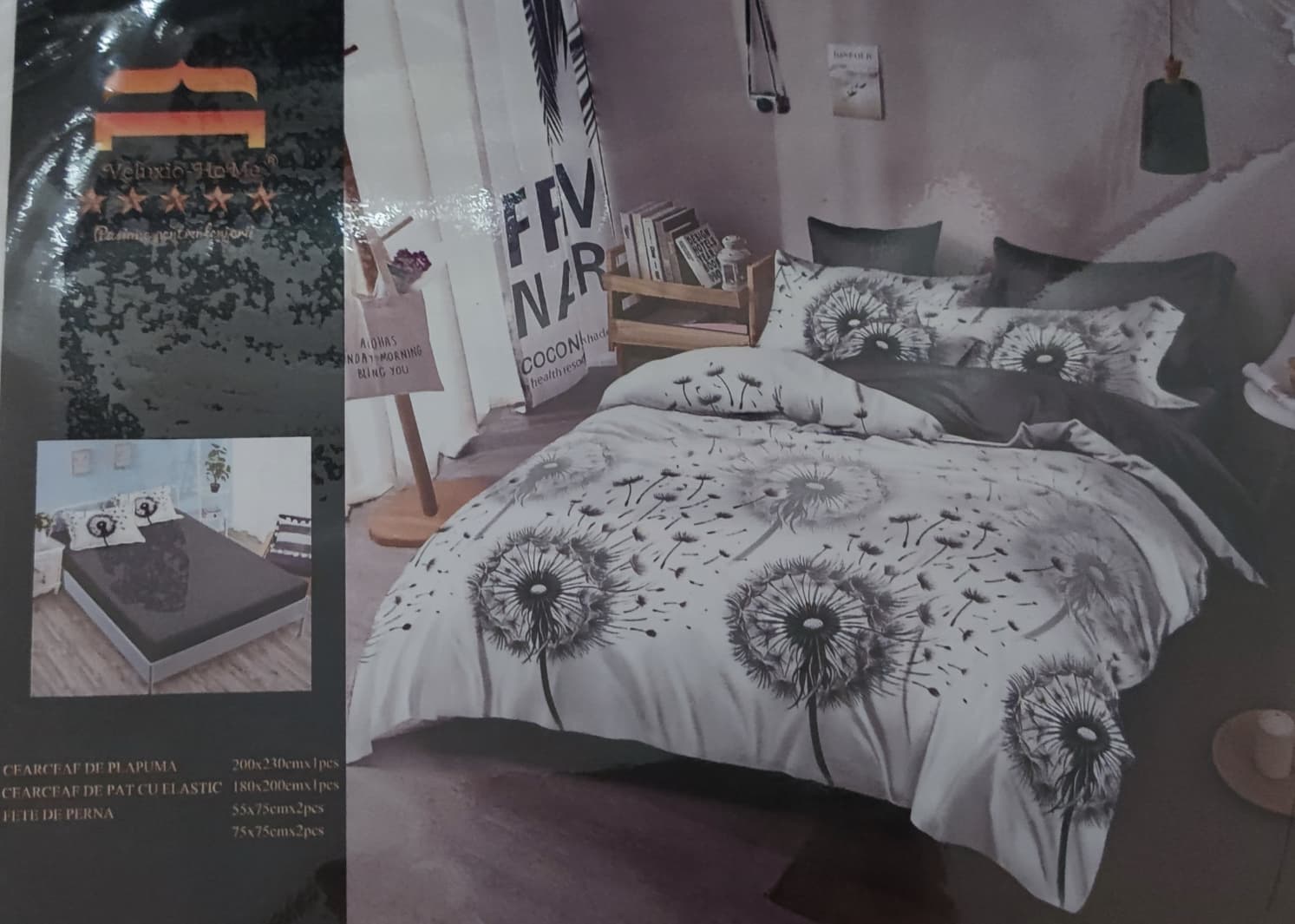 Lenjerie de pat dublu, Bumbac Finet, 6 piese cu elastic - LCE09 50% REDUCERE !!! 79,00 RON 150,00 RON