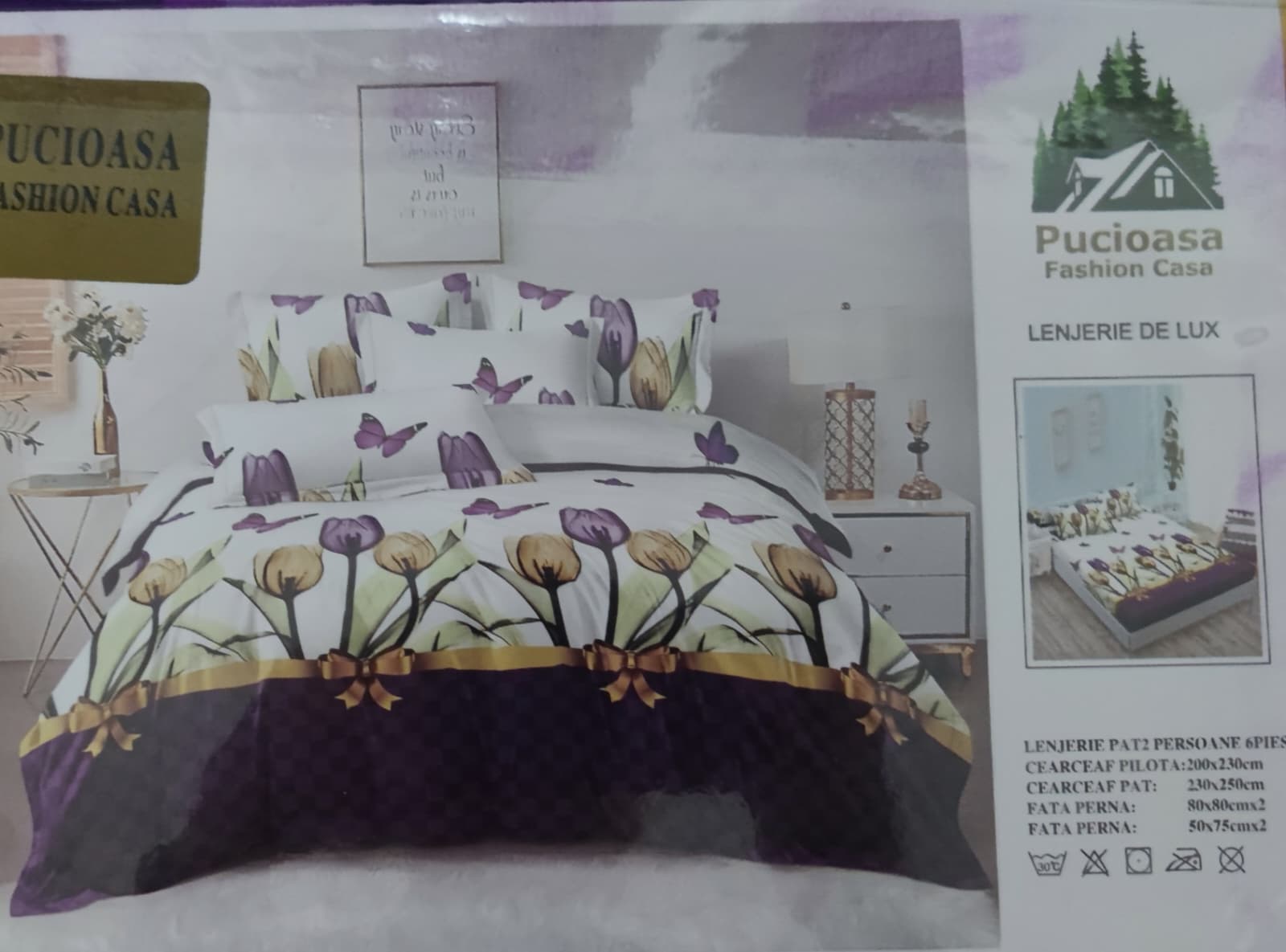 Lenjerie de pat dublu, Bumbac Finet, 6 piese cu elastic - LCE02 50% REDUCERE !!! 79,00 RON 150,00 RON