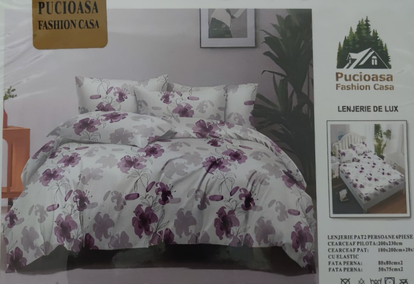 Lenjerie de pat dublu, Bumbac Finet, 6 piese cu elastic - LCE16 50% REDUCERE !!! 79,00 RON 150,00 RON