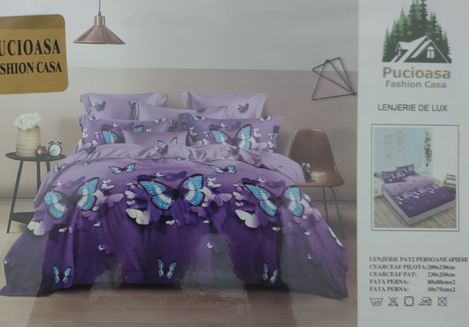 Lenjerie de pat dublu, Bumbac Finet, 6 piese cu elastic - LCE17 50% REDUCERE !!! 79,00 RON 150,00 RON