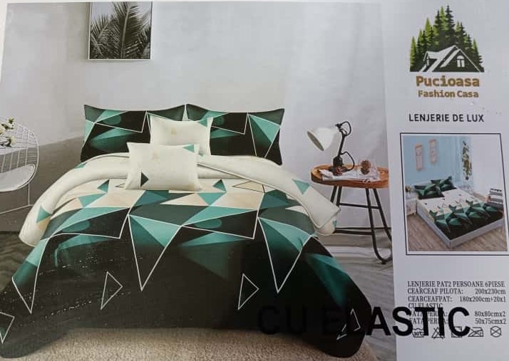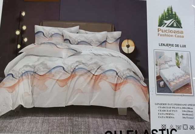 Lenjerie de pat dublu, Bumbac Finet, 6 piese cu elastic - LCE21 50% REDUCERE !!! 74,99 RON 150,00 RON