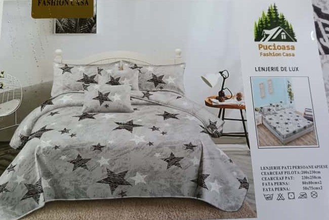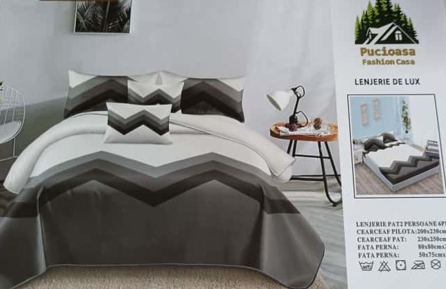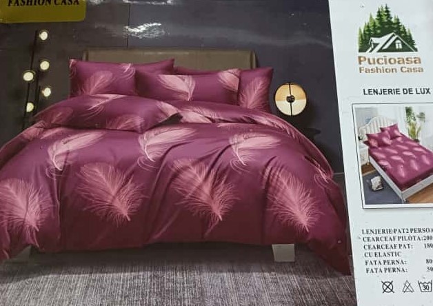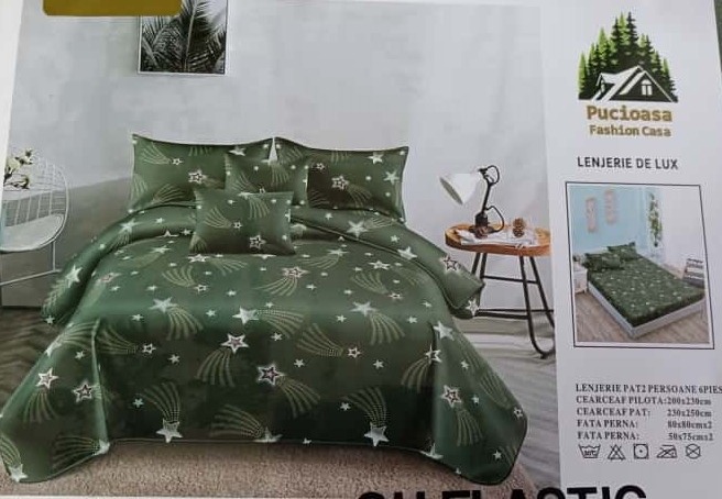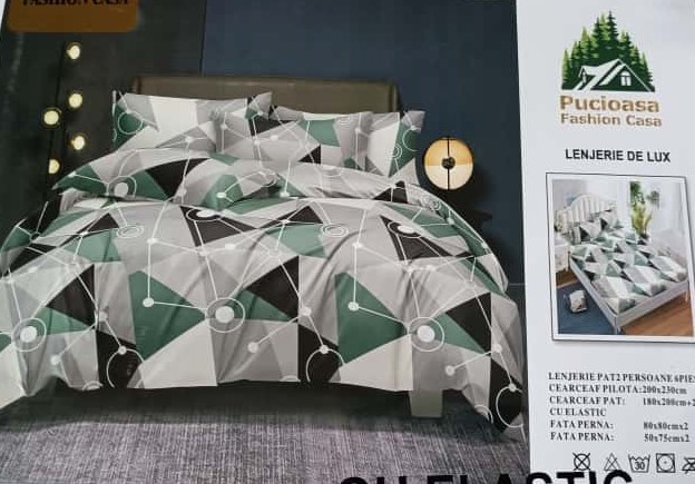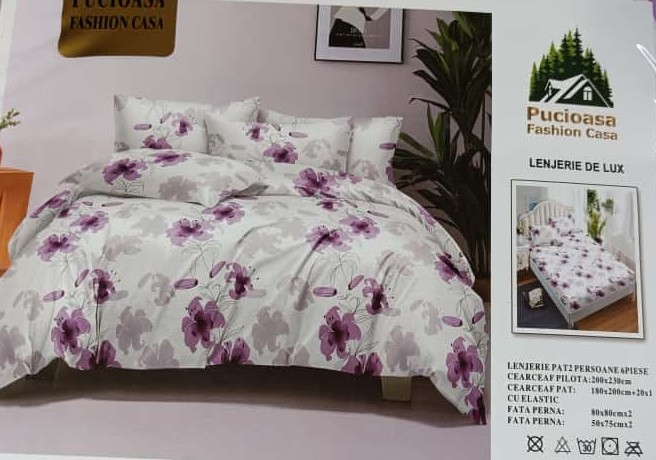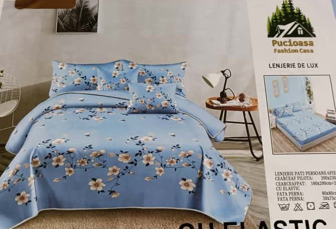 Lenjerie de pat dublu, Bumbac Finet, 6 piese cu elastic - LCE24 50% REDUCERE !!! 74,99 RON 150,00 RON