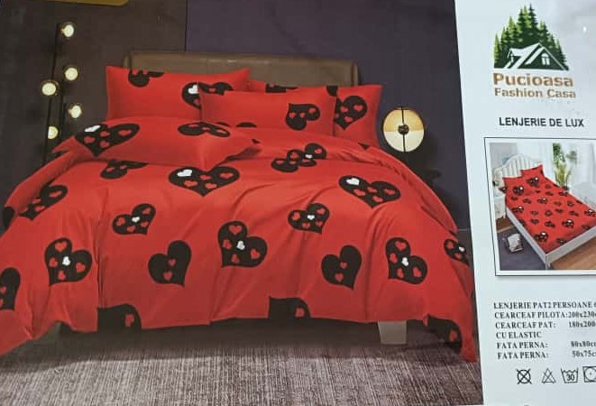 Lenjerie de pat dublu, Bumbac Finet, 6 piese cu elastic - LCE08 50% REDUCERE !!! 74,99 RON 150,00 RON