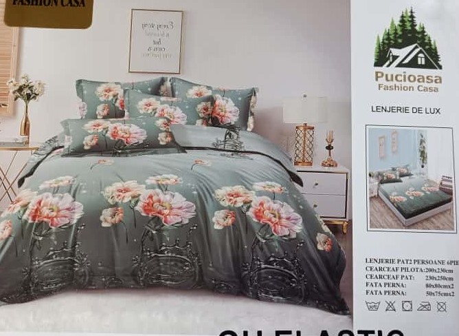 Lenjerie de pat dublu, Bumbac Finet, 6 piese cu elastic - LCE20 50% REDUCERE !!! 74,99 RON 150,00 RON