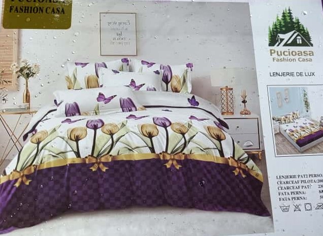 Lenjerie de pat dublu, Bumbac Finet, 6 piese cu elastic - LCE01 50% REDUCERE !!! 74,99 RON 150,00 RON