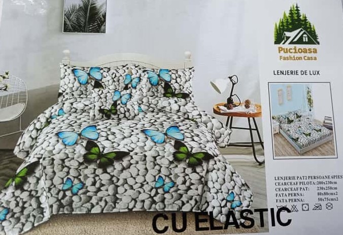 Lenjerie de pat dublu, Bumbac Finet, 6 piese cu elastic - LCE05 50% REDUCERE !!! 74,99 RON 150,00 RON