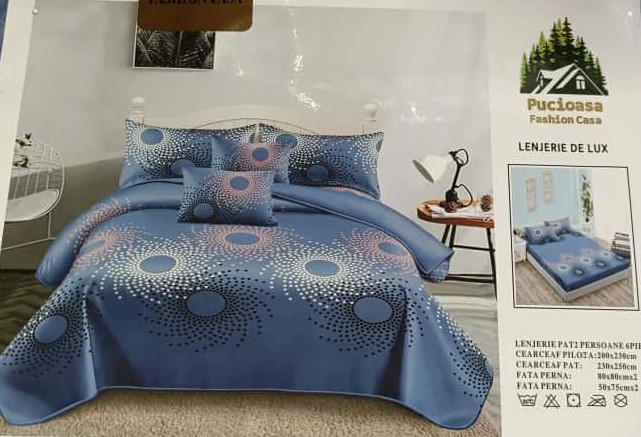 Lenjerie de pat dublu, Bumbac Finet, 6 piese cu elastic - LCE02 50% REDUCERE !!! 74,99 RON 150,00 RON