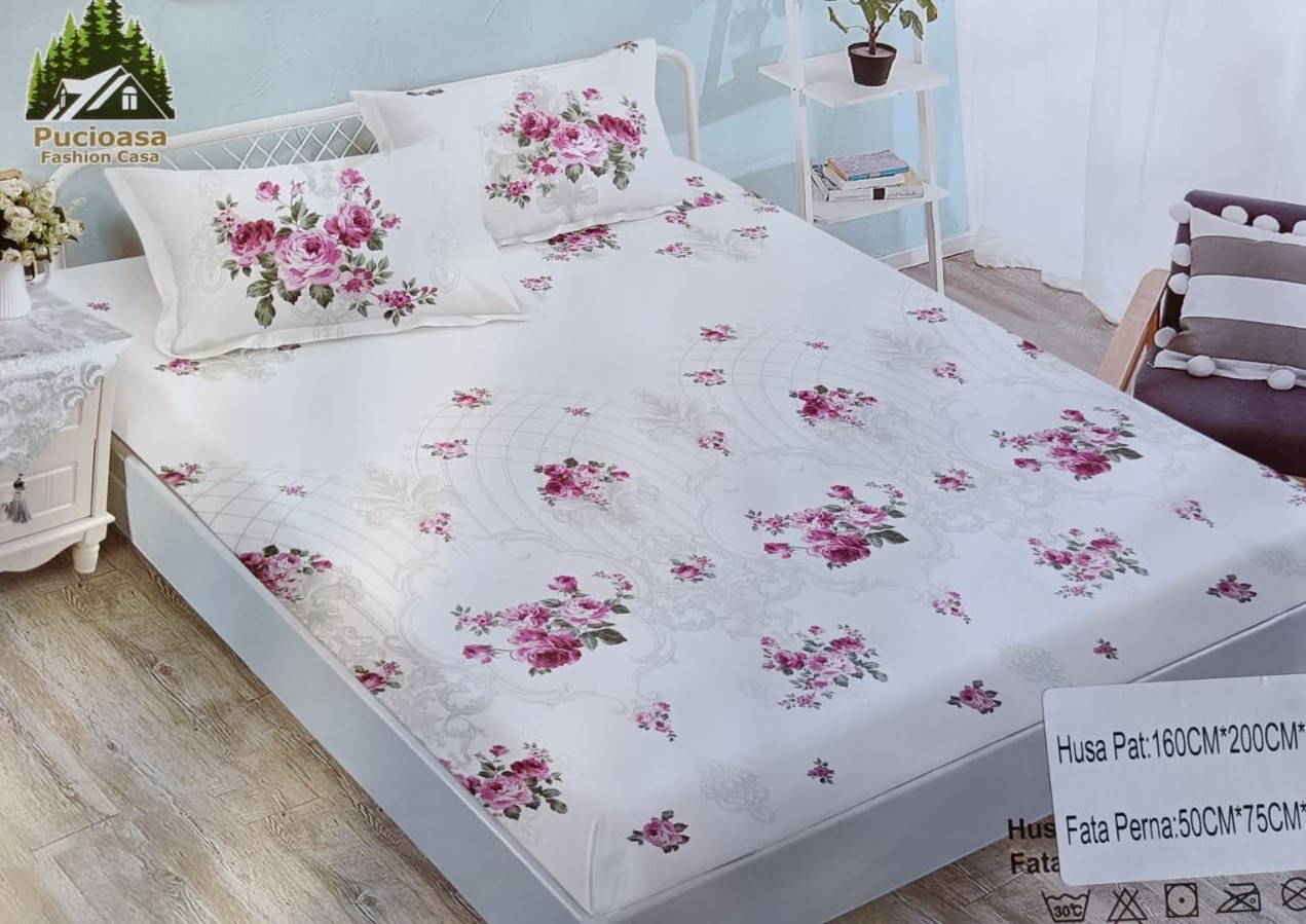 Husa Bumbac Finet, 3 piese cu elastic 180X200 cm - 3P180- 7