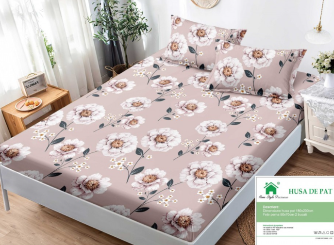 Husa Bumbac Finet, 3 piese cu elastic 180X200 cm - 3P180- COD 10
