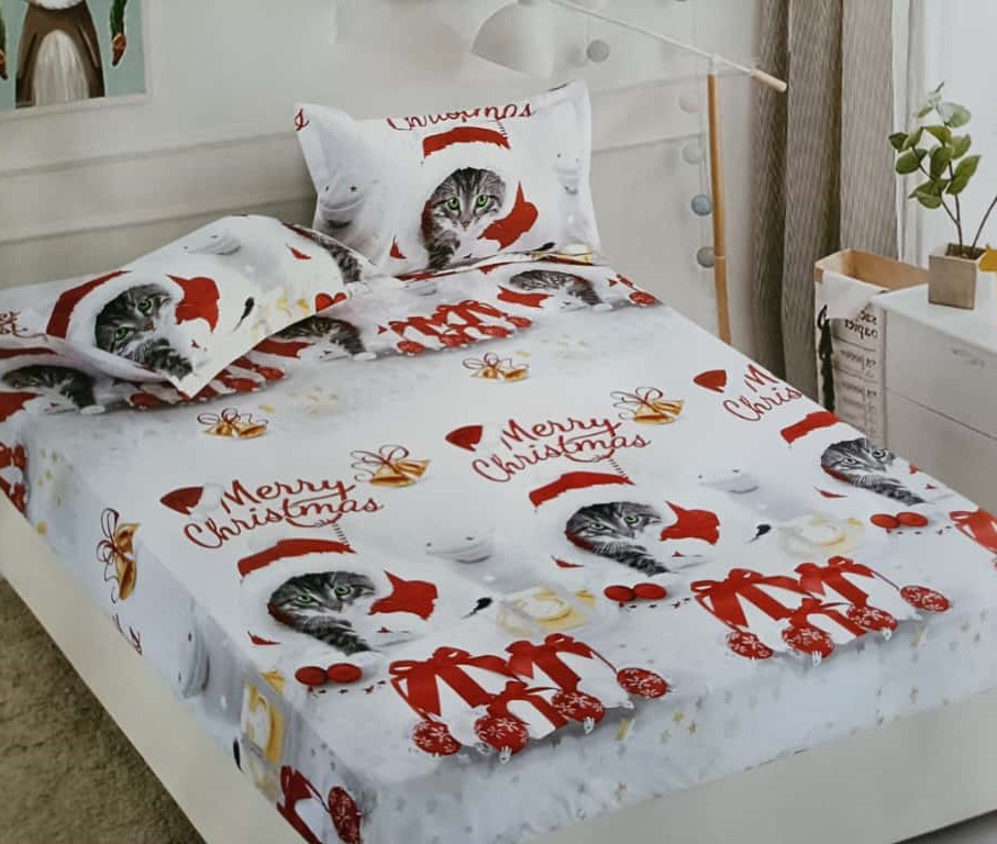 Husa CRACIUN, Finet cu Elastic + 2 Fete de Perna, Pat Dublu - HCR011