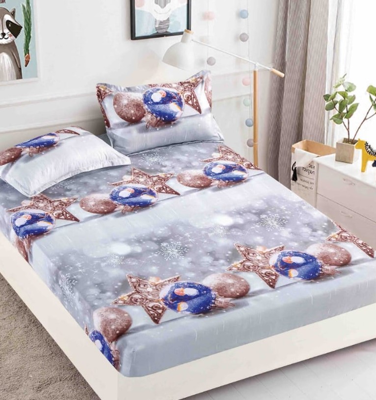 Husa CRACIUN, Finet cu Elastic + 2 Fete de Perna, Pat Dublu - HCR012