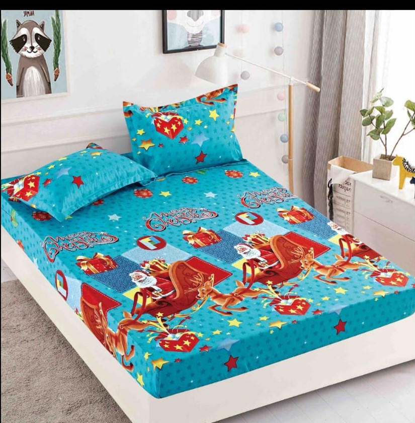 Husa CRACIUN, Finet cu Elastic + 2 Fete de Perna, Pat Dublu - HCR013