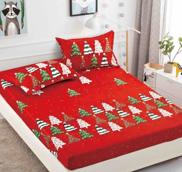 Husa CRACIUN, Finet cu Elastic + 2 Fete de Perna, Pat Dublu - HCR03