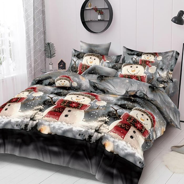 Lenjerie de pat dublu, Bumbac Finet, 6 piese cu tematica de Craciun.