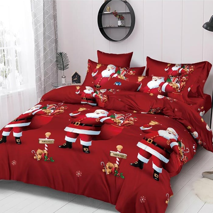 Lenjerie de pat dublu, Bumbac Finet, 6 piese cu tematica de Craciun.