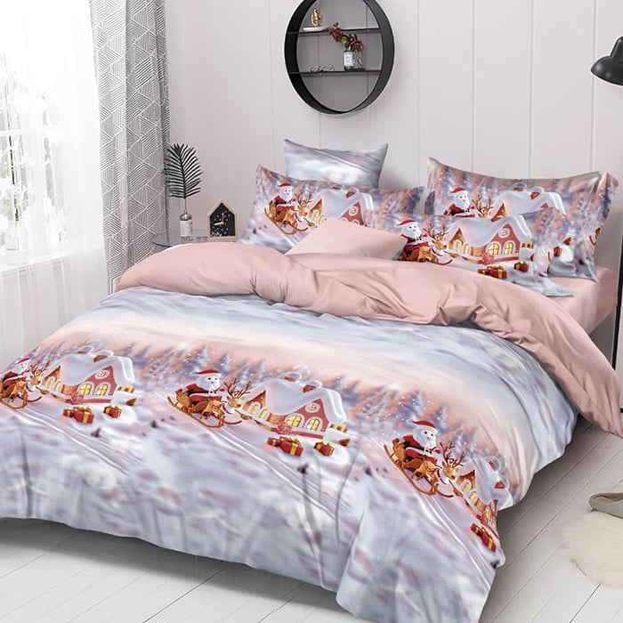 Lenjerie de pat dublu, Bumbac Finet, 6 piese cu tematica de Craciun.