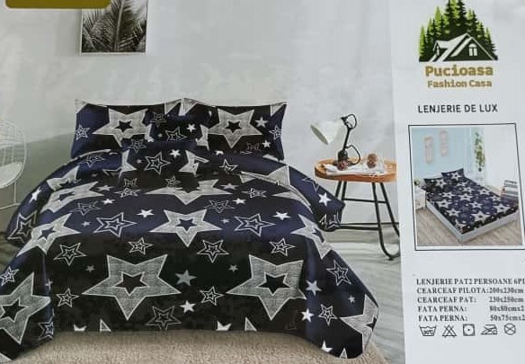 Lenjerie de pat dublu, Bumbac Finet, 6 piese cu elastic - LCE23