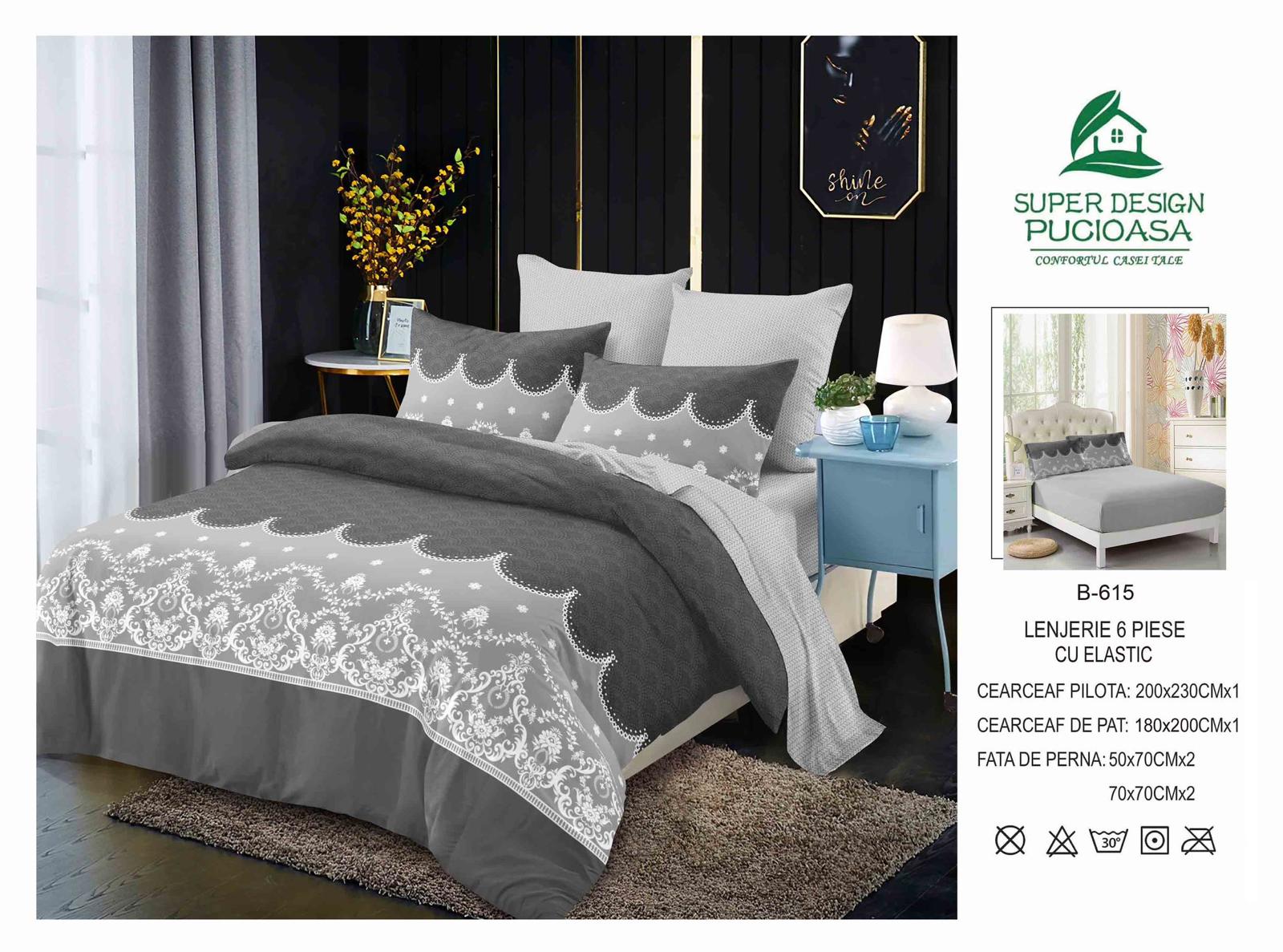 Lenjerie de pat dublu, Bumbac Finet, 6 piese cu elastic - LCE28